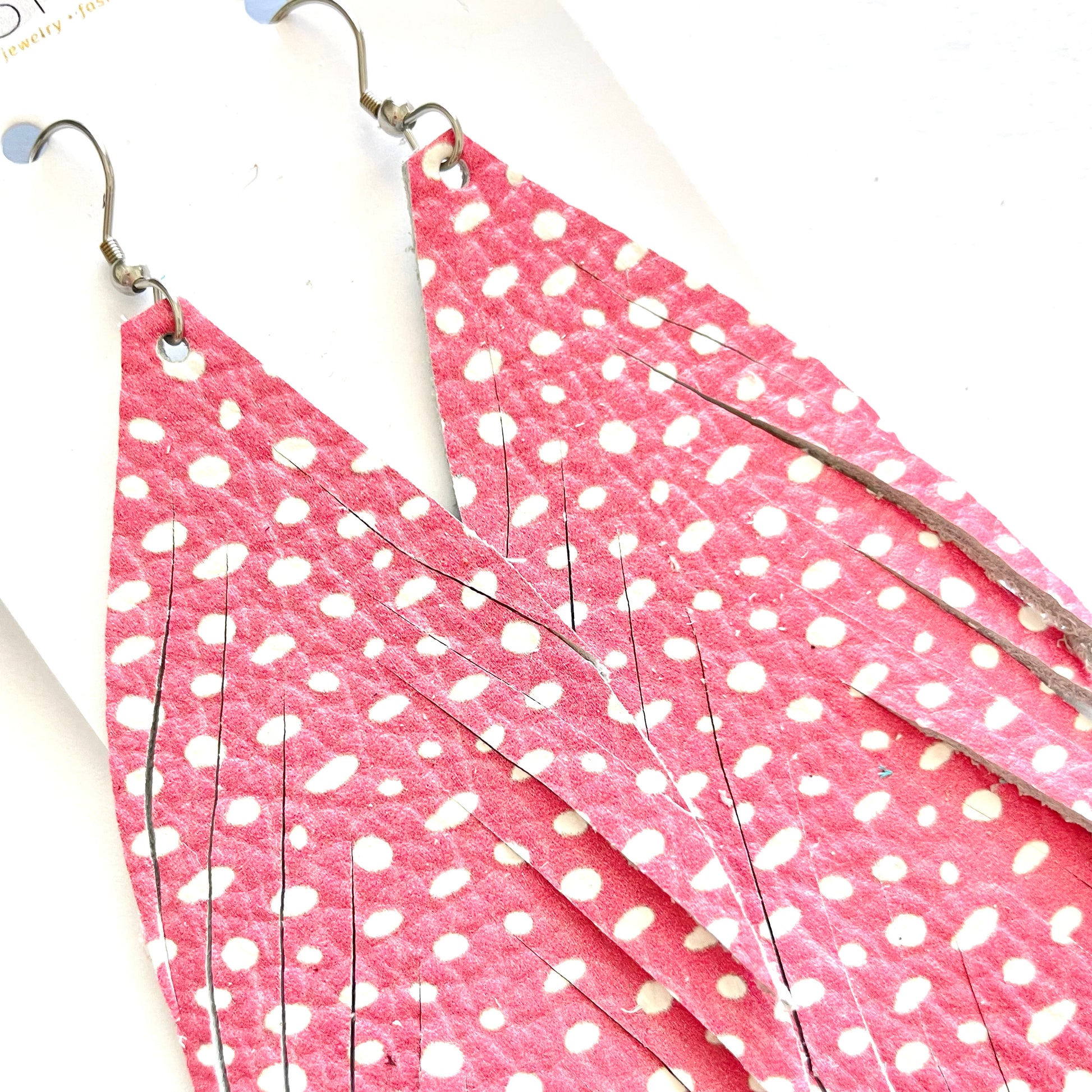 All earrings pictured are fun and fabulous! Our earrings are made with leather and faux leather. All hooks are hypoallergenic, but because we’ve learned all ear sensitivities are different, we cannot make any guarantees to your ears specifically.