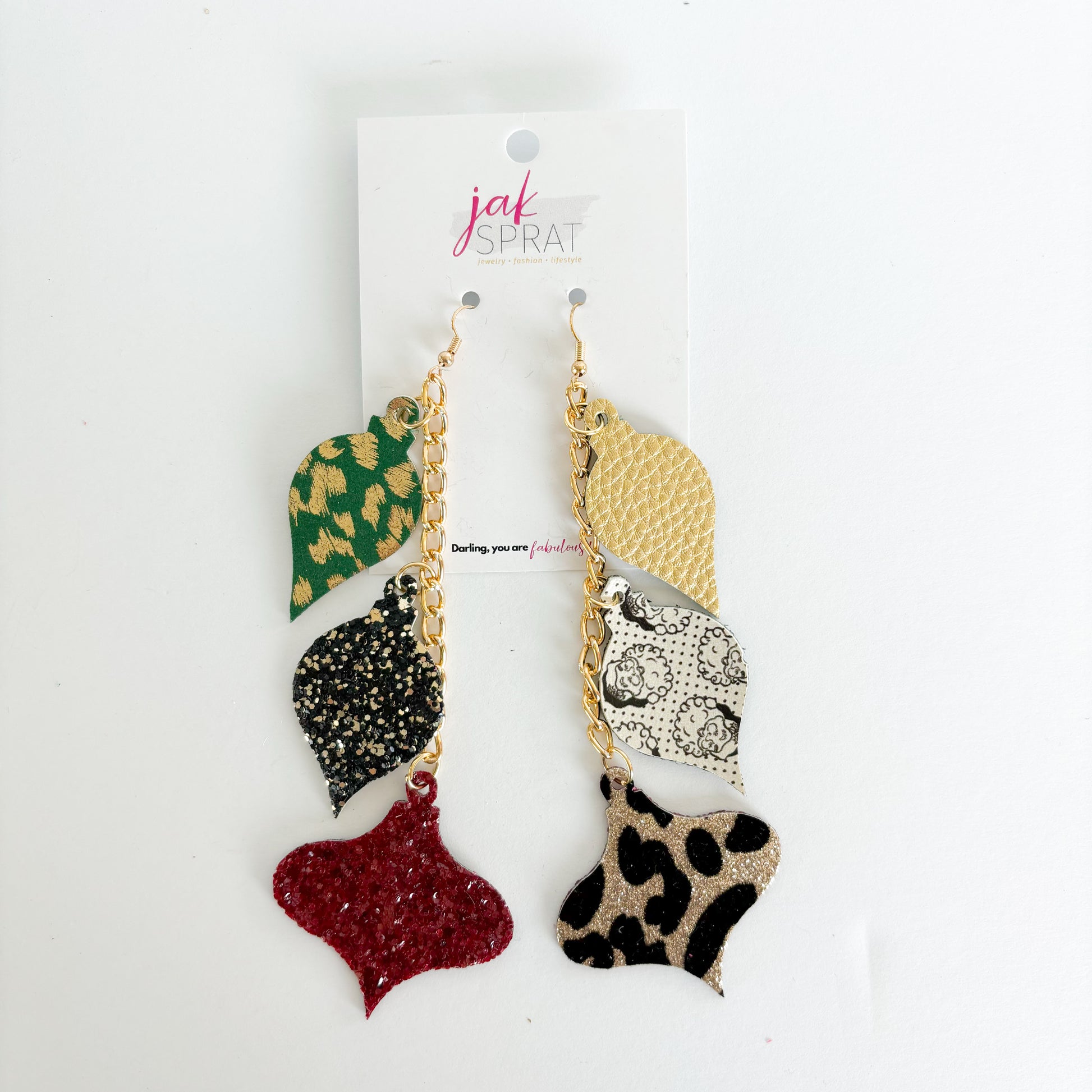All earrings pictured are fun and fabulous! Our earrings are made with leather and faux leather. All hooks are hypoallergenic, but because we’ve learned all ear sensitivities are different, we cannot make any guarantees to your ears specifically.