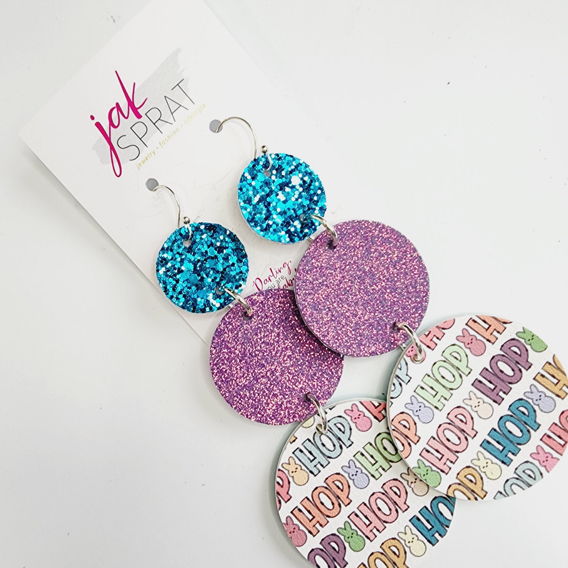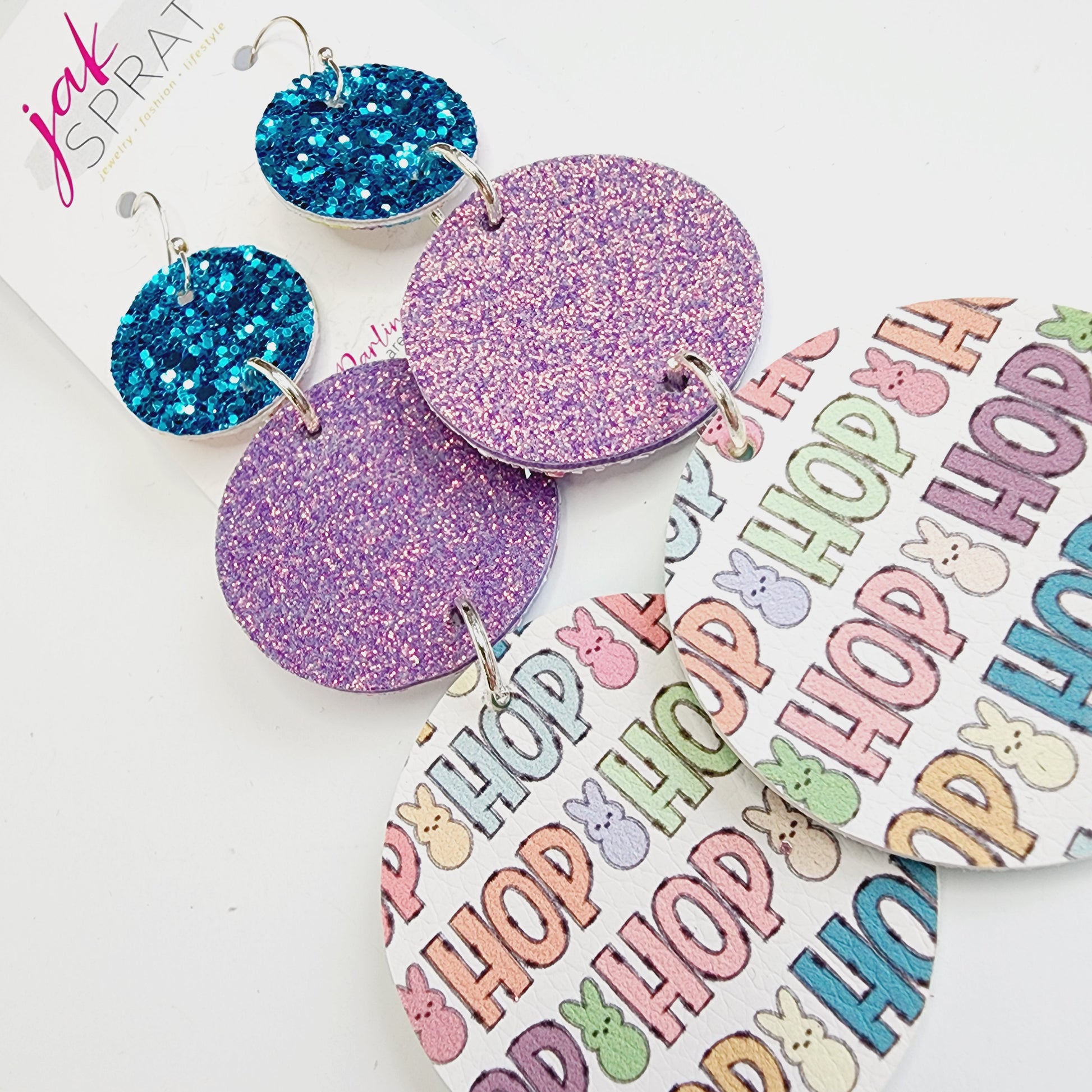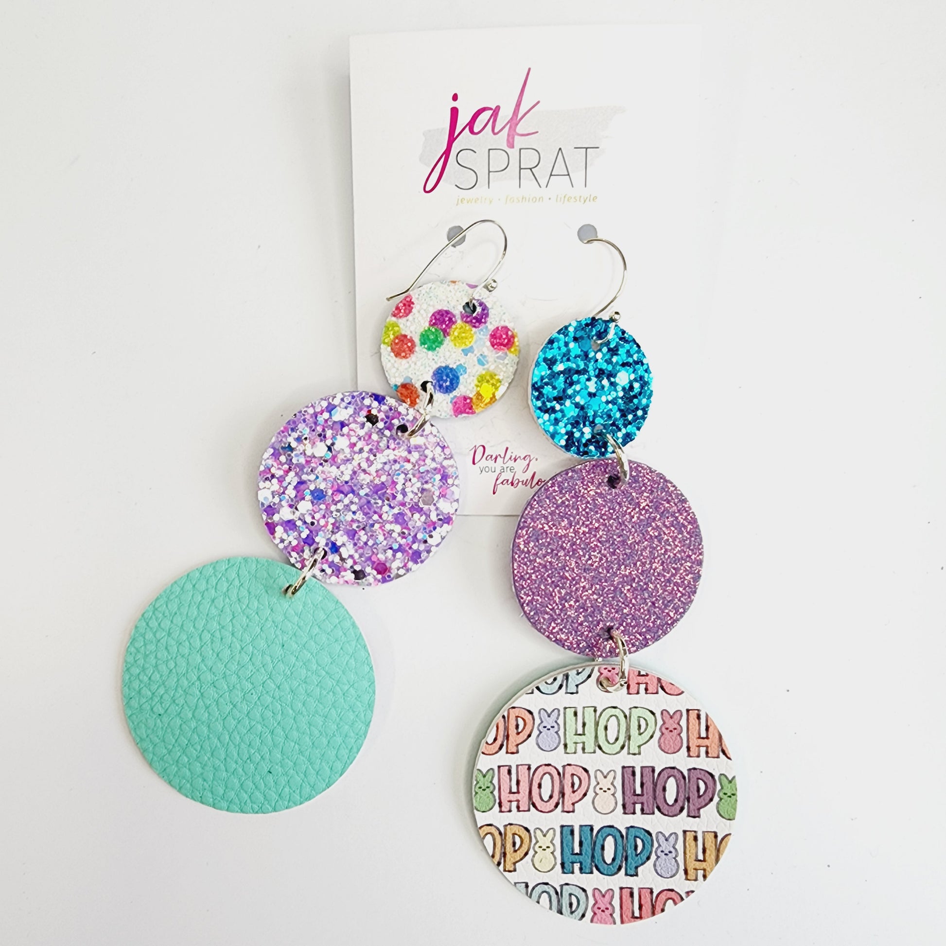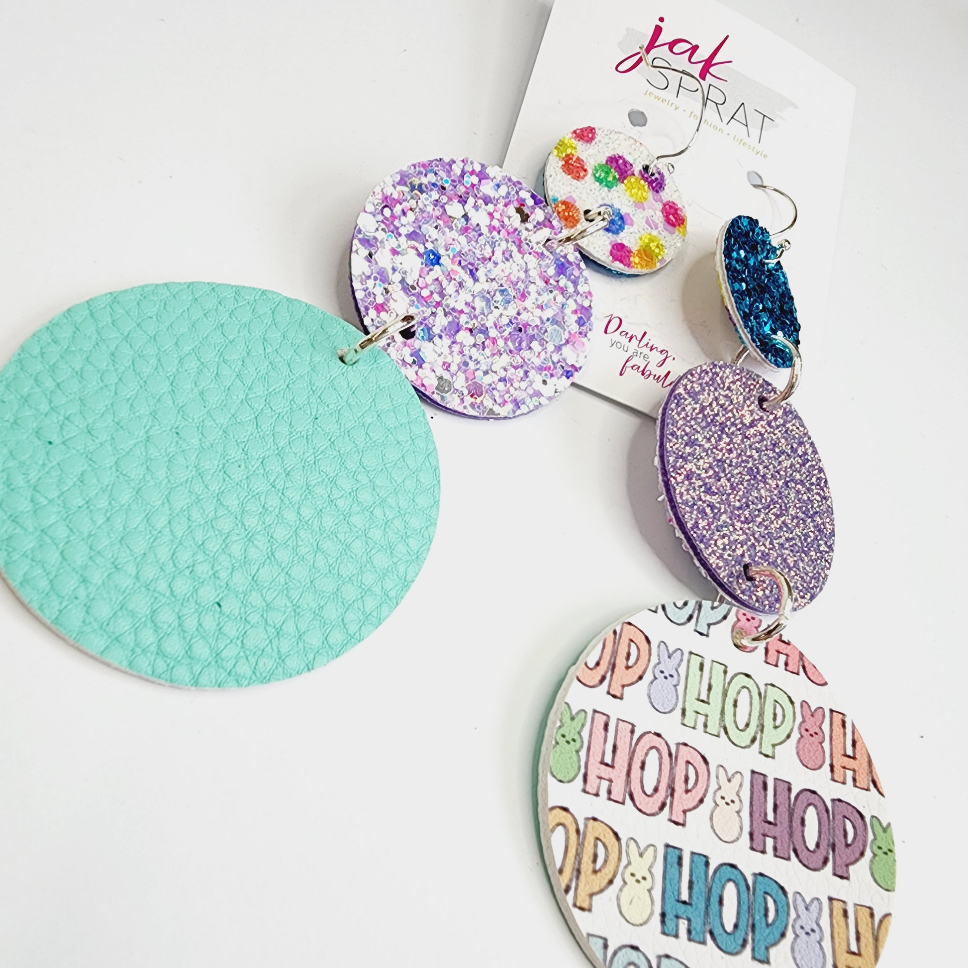 All earrings pictured are fun and fabulous! Our earrings are made with leather and faux leather. All hooks are hypoallergenic, but because we’ve learned all ear sensitivities are different, we cannot make any guarantees to your ears specifically.