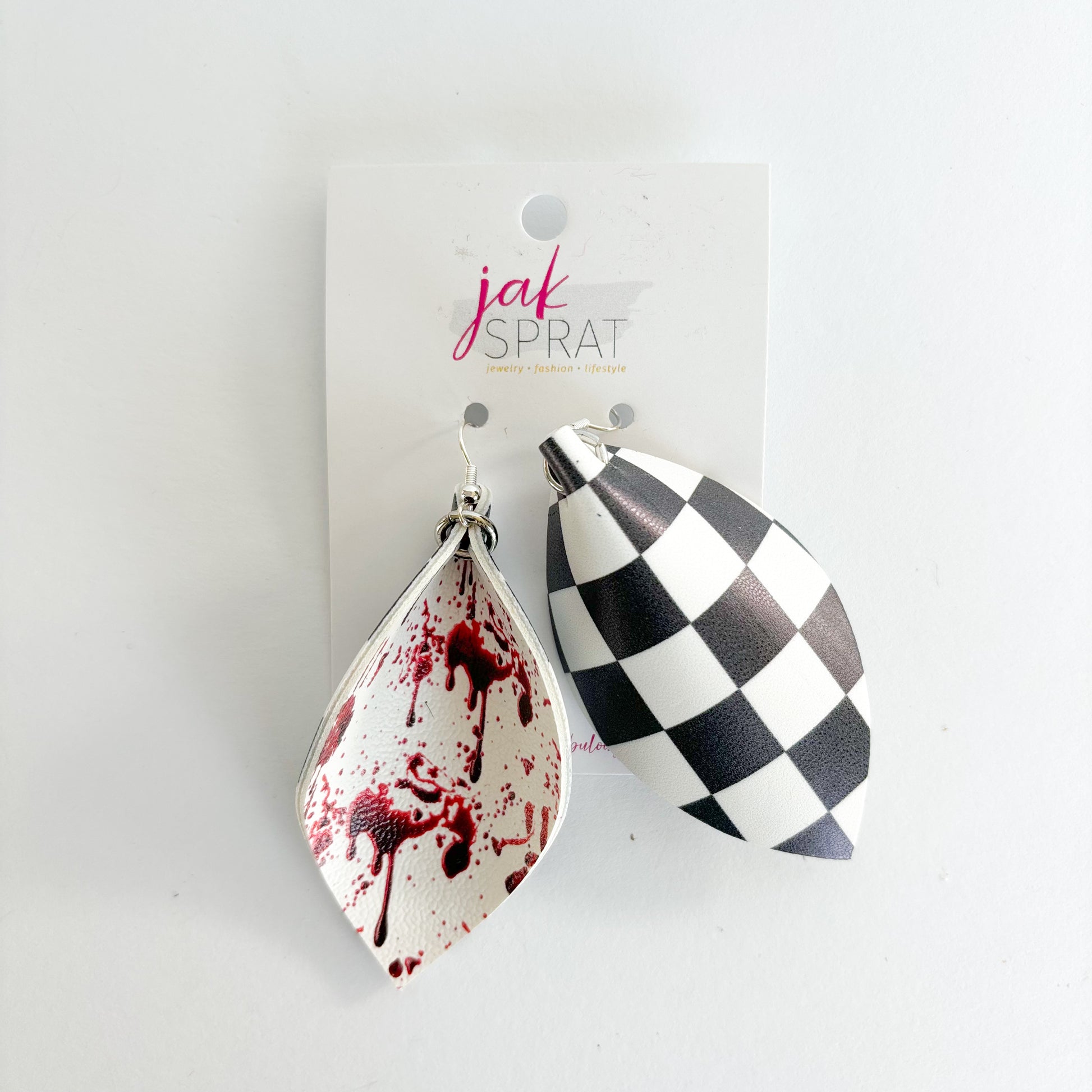 All earrings pictured are fun and fabulous! Our earrings are made with leather and faux leather. All hooks are hypoallergenic, but because we’ve learned all ear sensitivities are different, we cannot make any guarantees to your ears specifically.