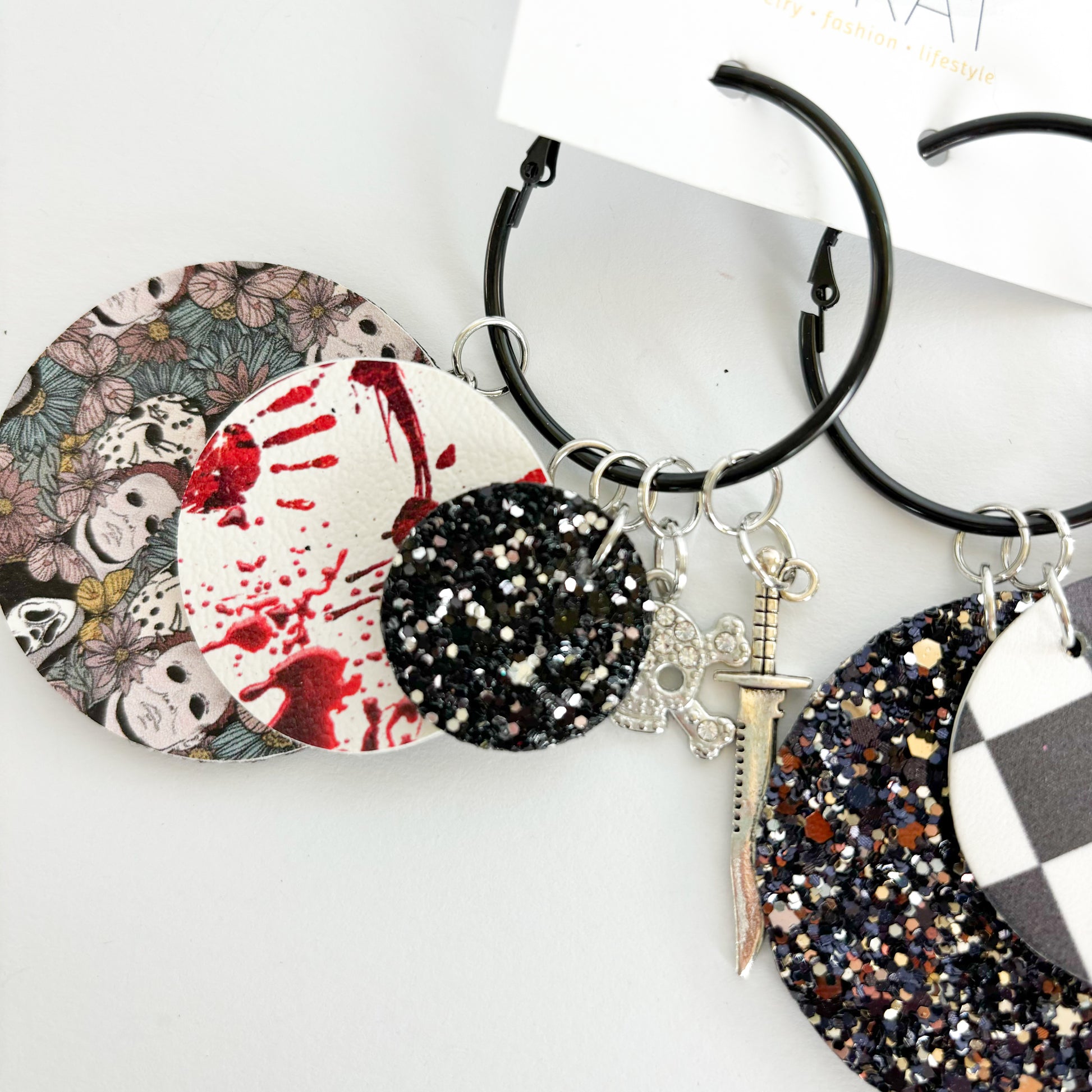All earrings pictured are fun and fabulous! Our earrings are made with leather and faux leather. All hooks are hypoallergenic, but because we’ve learned all ear sensitivities are different, we cannot make any guarantees to your ears specifically.