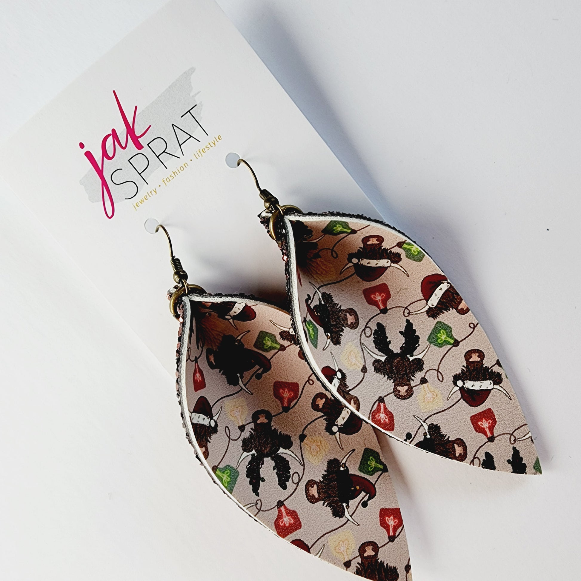 All earrings pictured are fun and fabulous! Our earrings are made with leather and faux leather. All hooks are hypoallergenic, but because we’ve learned all ear sensitivities are different, we cannot make any guarantees to your ears specifically.