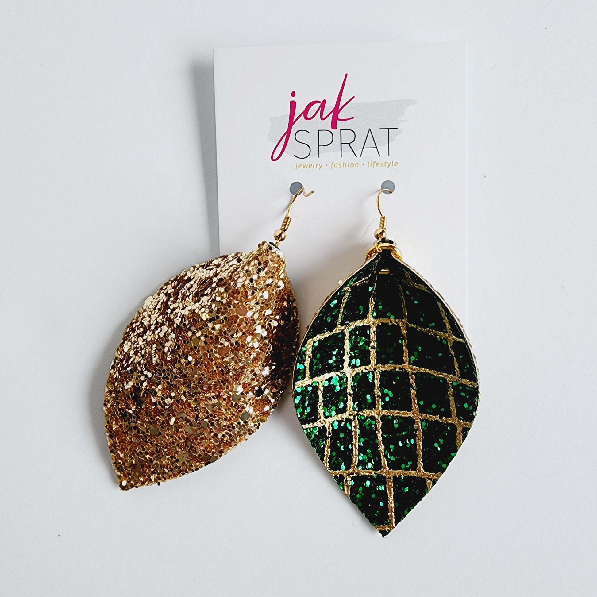 Step up your earring game with our PINCHED LEAF style collection, the for those who love JAK Sprat one-of-a-kind styles- that you probably won't see again. Each pair is crafted with a mix of leather and faux leather for a lightweight, yet bold look. Whether you're going for playful or chic, these earrings are sure to make a statement wherever you go.