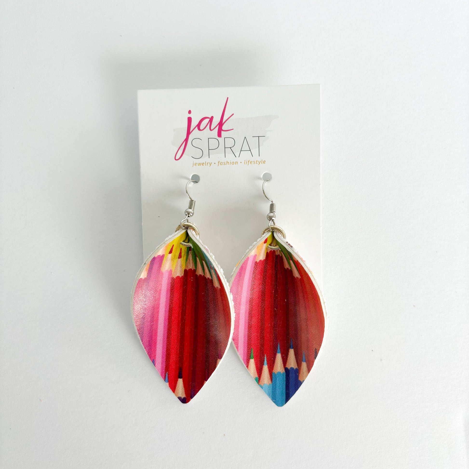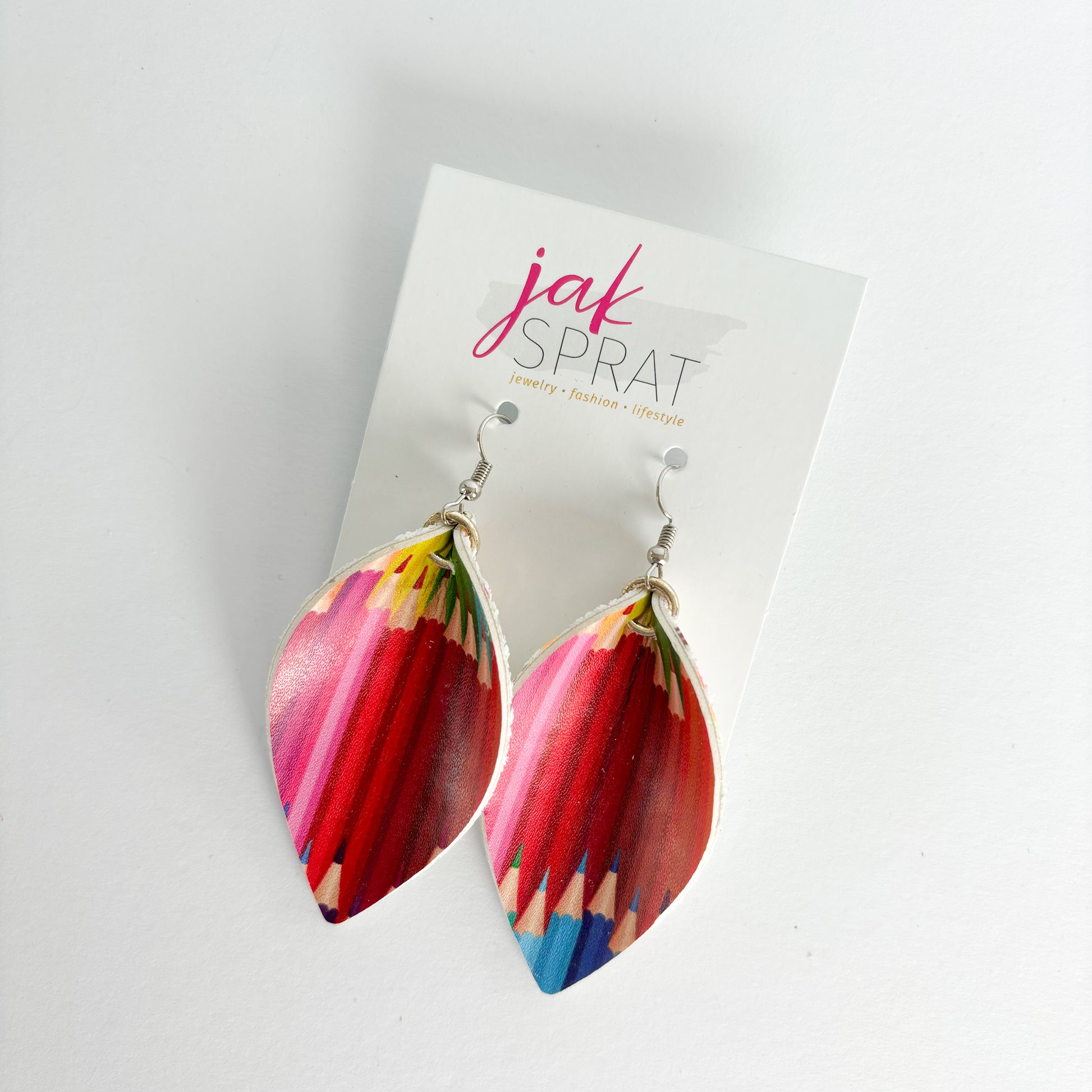 Step up your earring game with our PINCHED LEAF style collection, the for those who love JAK Sprat one-of-a-kind styles- that you probably won't see again. Each pair is crafted with a mix of leather and faux leather for a lightweight, yet bold look. Whether you're going for playful or chic, these earrings are sure to make a statement wherever you go.