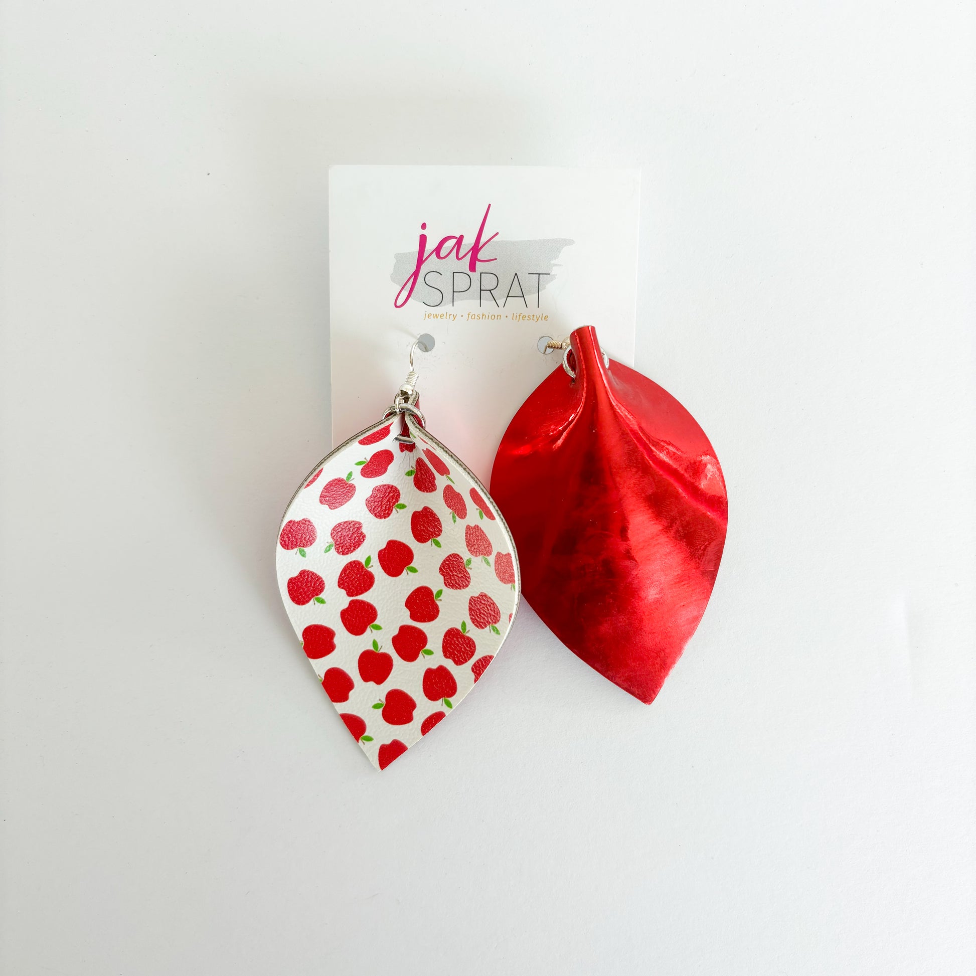 Step up your earring game with our PINCHED LEAF style collection, the for those who love JAK Sprat one-of-a-kind styles- that you probably won't see again. Each pair is crafted with a mix of leather and faux leather for a lightweight, yet bold look. Whether you're going for playful or chic, these earrings are sure to make a statement wherever you go.