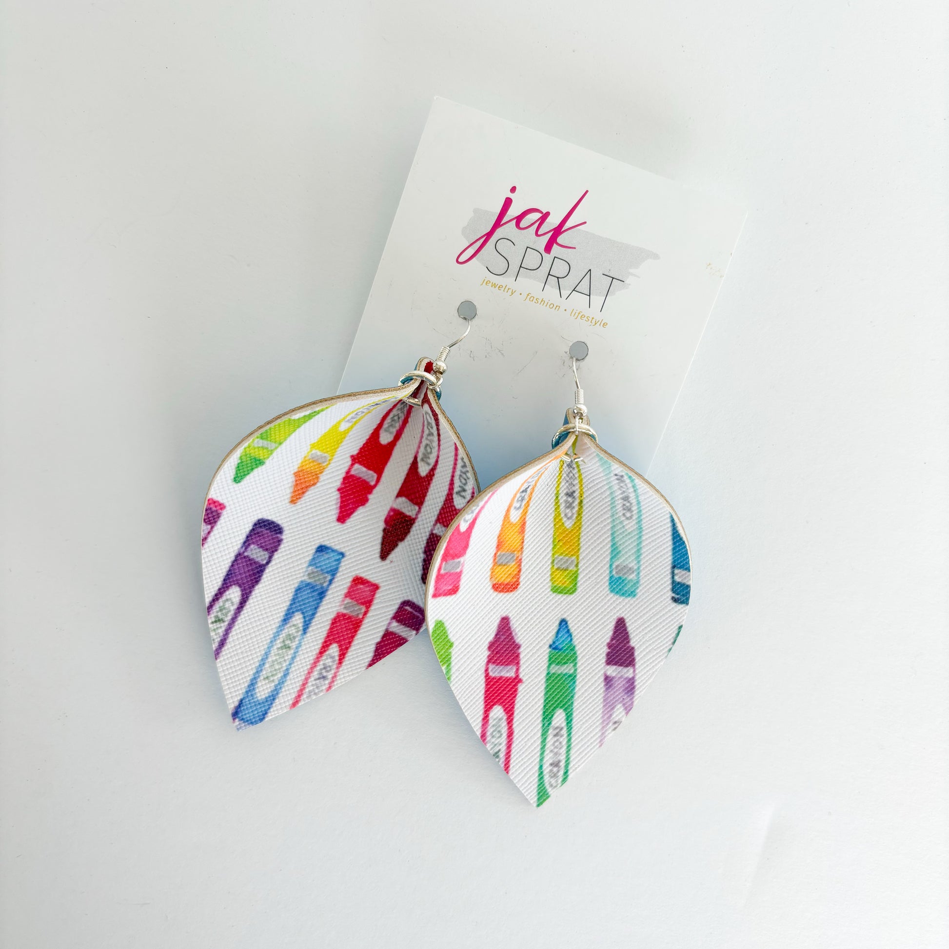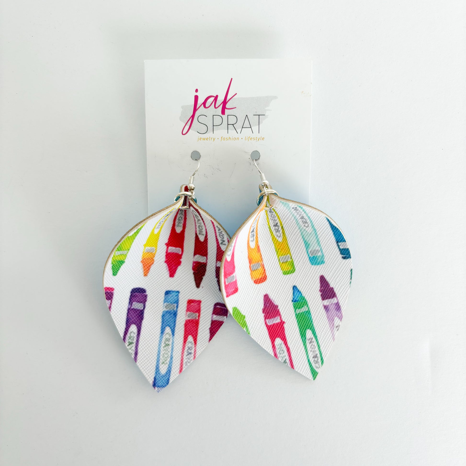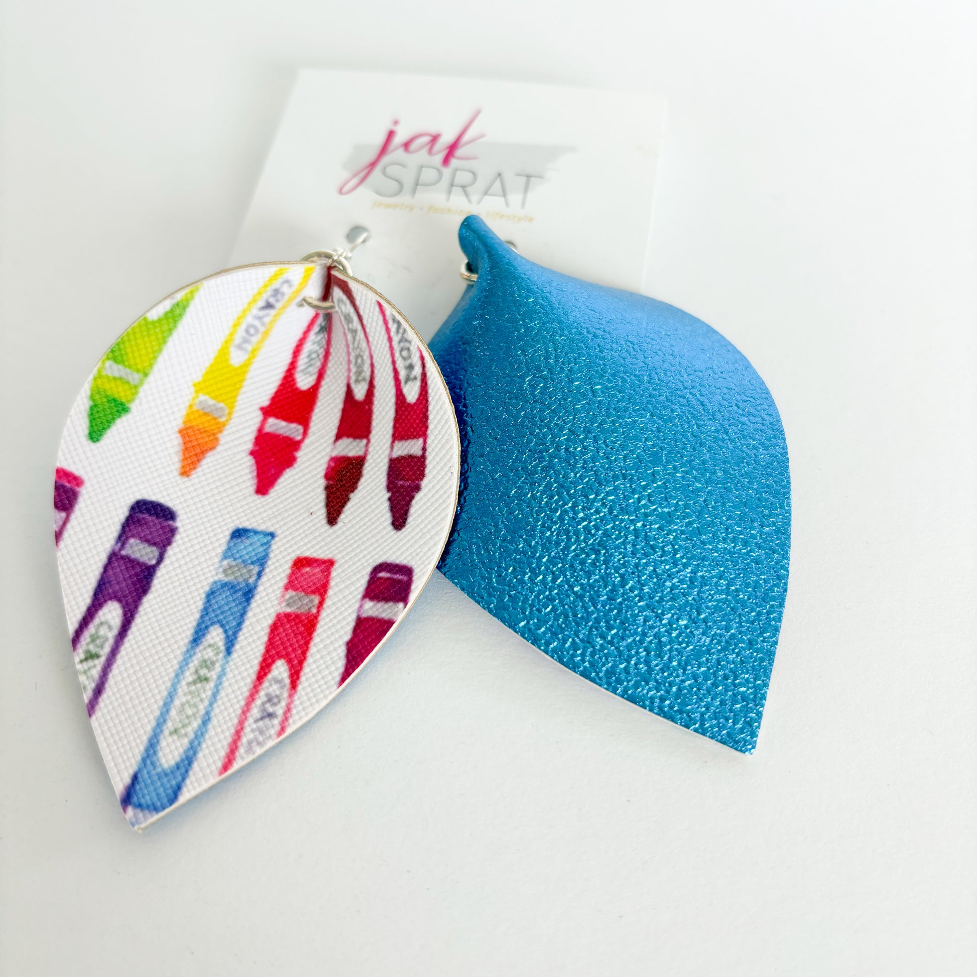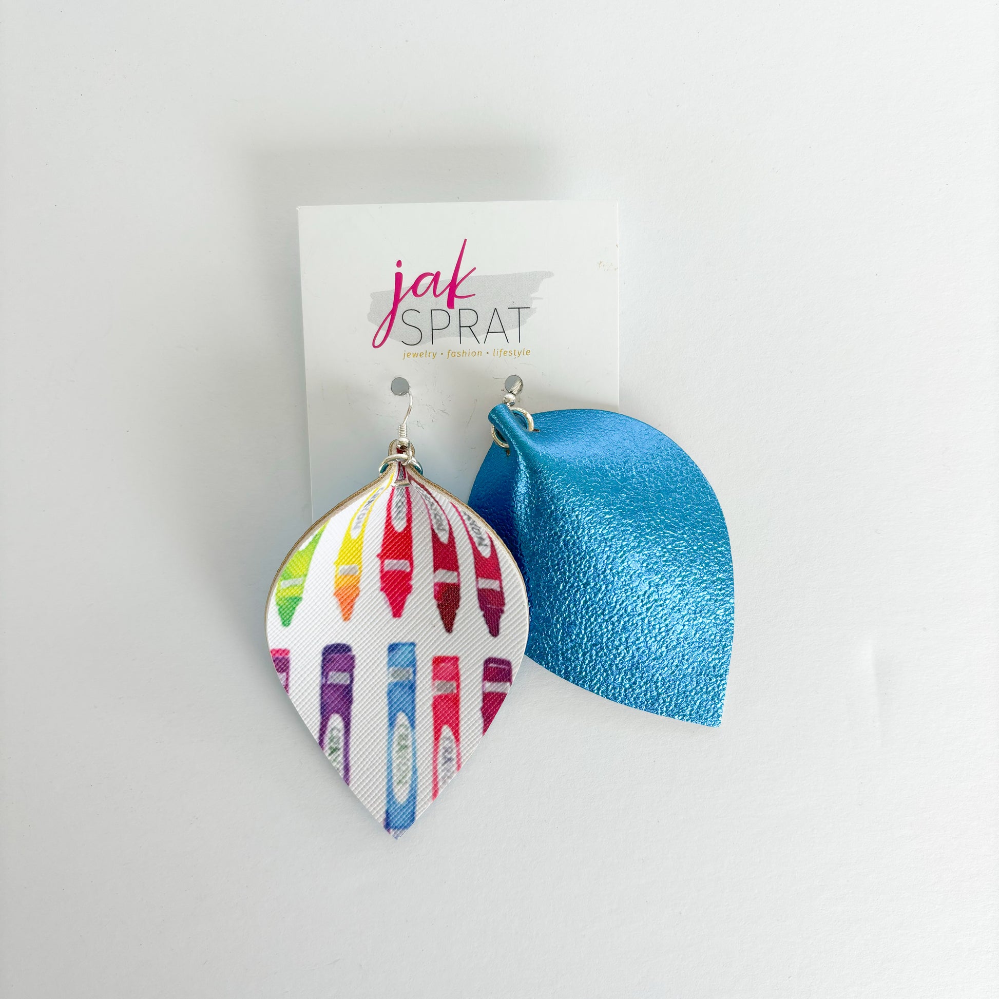 Step up your earring game with our PINCHED LEAF style collection, the for those who love JAK Sprat one-of-a-kind styles- that you probably won't see again. Each pair is crafted with a mix of leather and faux leather for a lightweight, yet bold look. Whether you're going for playful or chic, these earrings are sure to make a statement wherever you go.